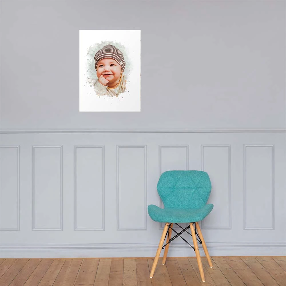 This fine art piece transcends mere memory; it’s a bespoke creation that elevates any space. Printed on Hahnemuhle Fine Art paper with high-quality inks, this portrait ensures vivid colors and lasting beauty. The watercolor style accentuates the gentle features of your baby, adding a sophisticated and heartwarming touch to your home.
