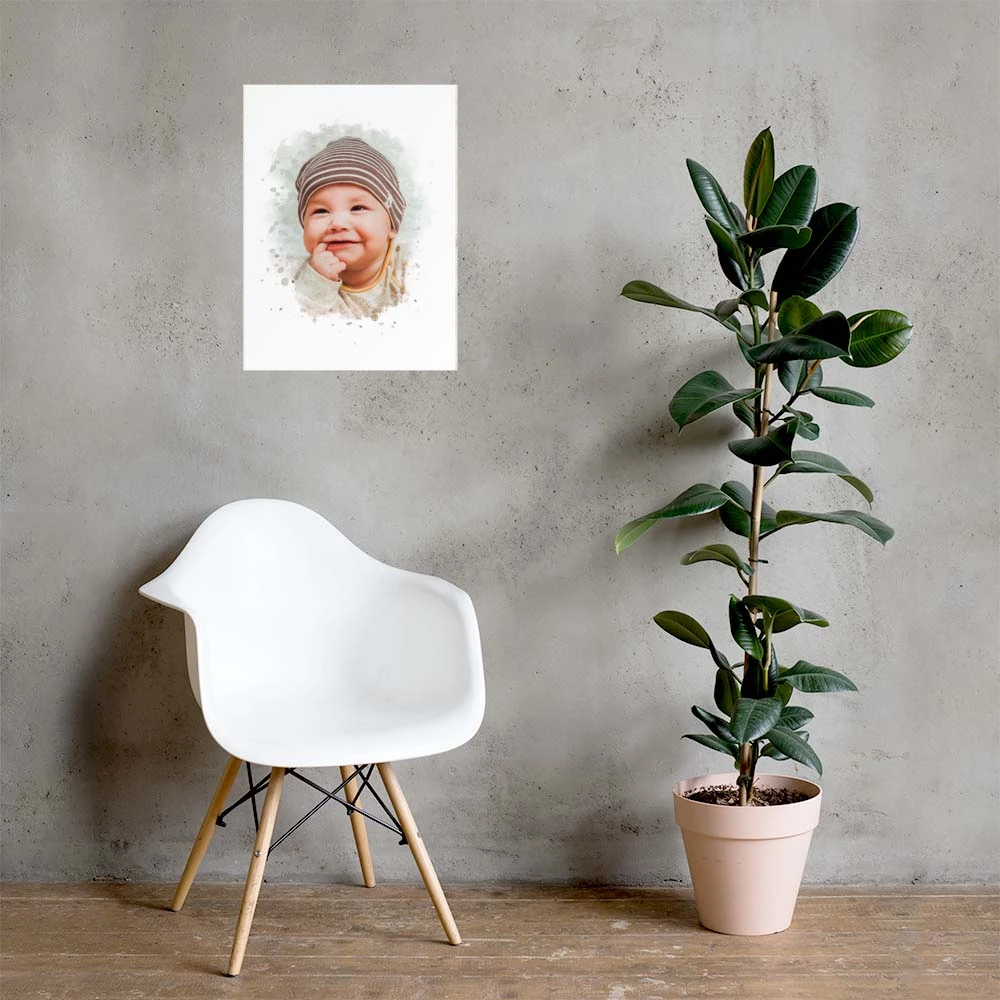 Capture the essence of your baby with our Custom Baby Portrait Watercolor Poster. Each portrait is created from your photos, ensuring a unique and high-quality piece of art that immortalizes your baby’s charm and personality. Perfect for sophisticated decor, this personalized portrait makes an ideal gift for yourself or the baby lovers in your life.