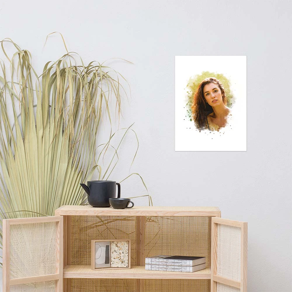 This personalized masterpiece adds sophistication to any space and makes a heartfelt gift for a loved one. Printed on premium paper using advanced technology, your portrait retains its beauty for years to come. The watercolor style imbues depth and character, creating a captivating focal point in your home.