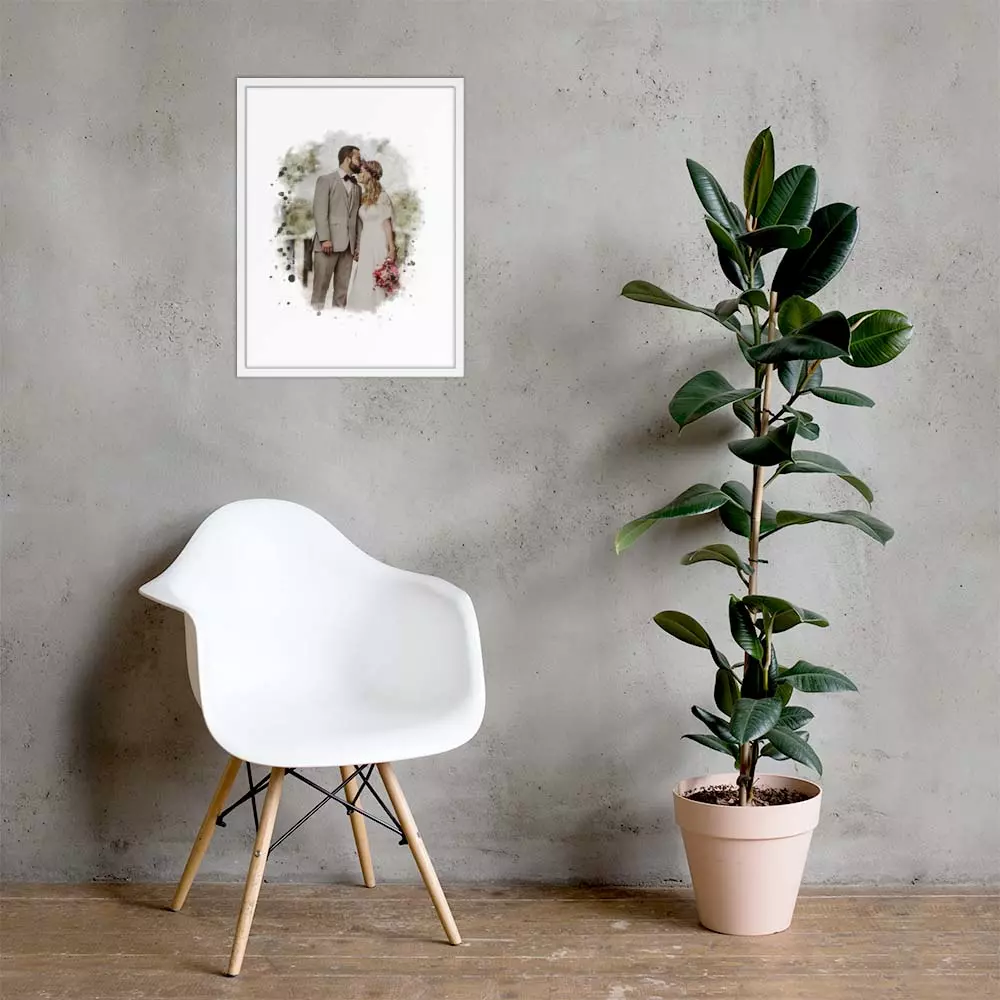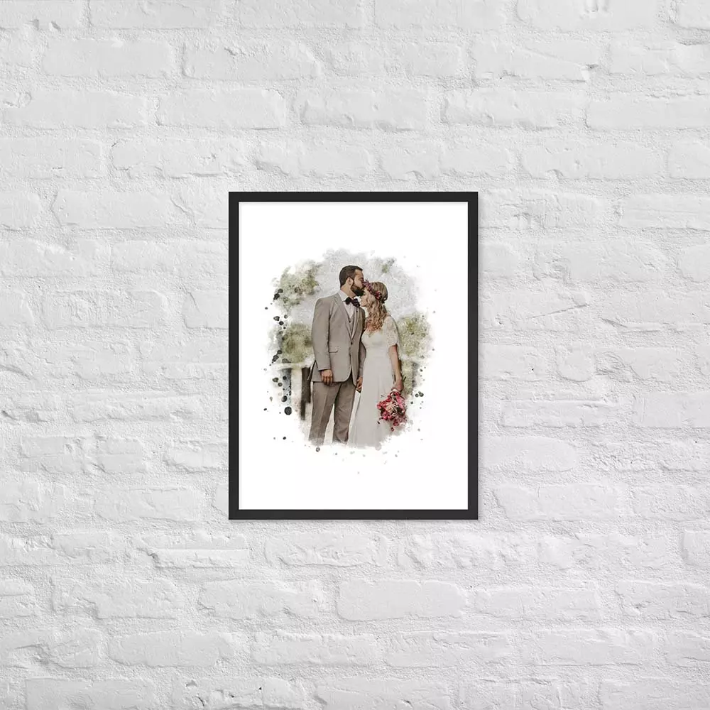 Custom Wedding Portrait Watercolor Framed Fine Art transforms your wedding photo into a vibrant masterpiece, adding elegance to any space and making it the perfect gift for a loved one.